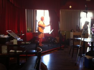 I joined some trop rock favorites on stage. Chris Sacks and his band were a blast to play with, and were definitely some guys I could hang with. They played the same kind of music I like — rockin’ trop rock. Mike Mangum sat in, cool guy; and Gary Philips joined on guitar, also a great guy; plus Duane Harlick from the Tropoholics — awesome voice, best version of Bob Seger’s “Night Moves” that I’ve heard. Lastly, John Frinzi took the stage — a charismatic guy with a great voice who apparently the girls really love! Had a blast playing and watching. Good times.